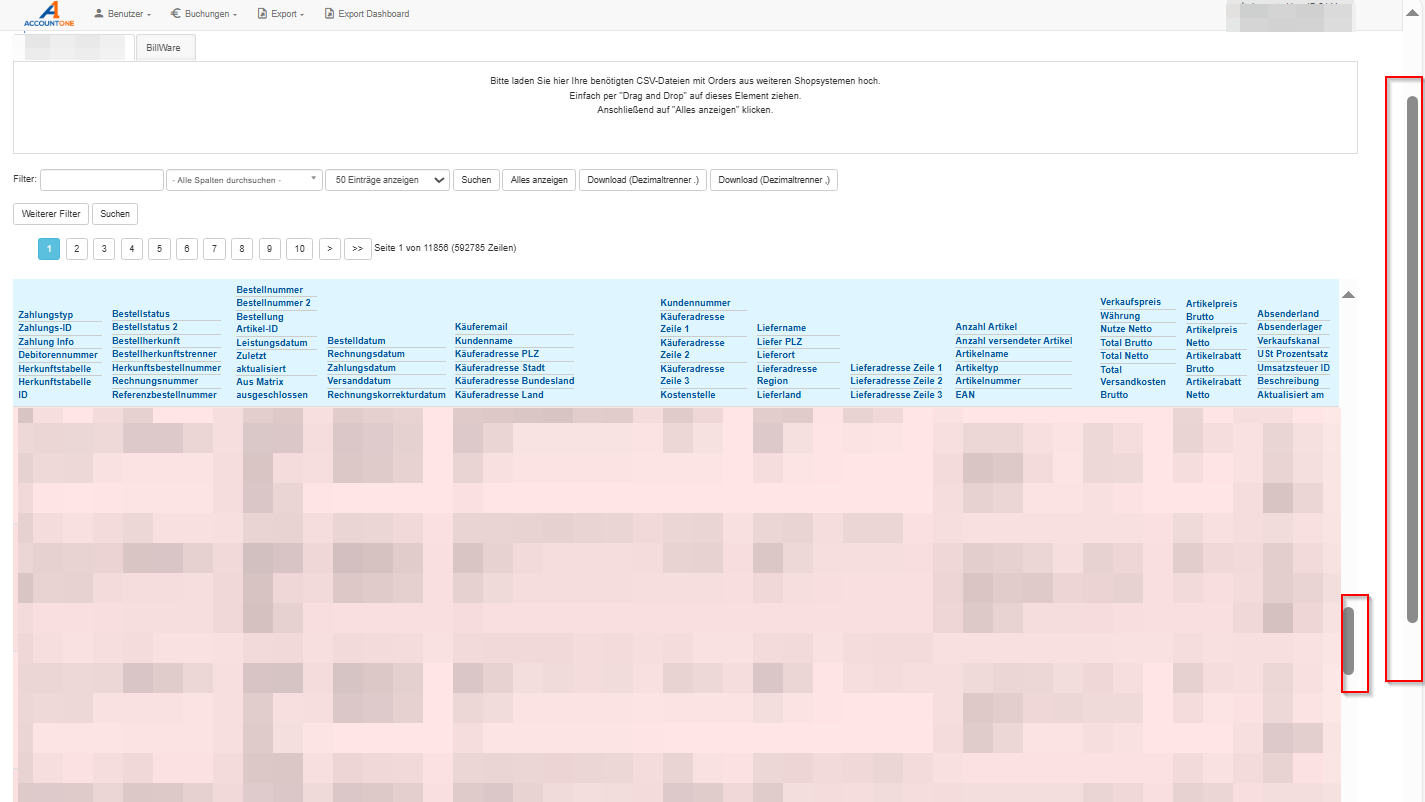 seit kurzem ist zum Beispiel im Bereich der externen Bestellungen ein zweiter Scrollbalken aufgetaucht - ich kann also im Fenster doppelt scrollen: